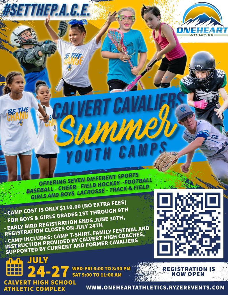 One Heart Athletics and Calvert High School present Summer Youth Sports Camp! July 24th - 27th at Calvert High School. See attached flyer for information and link to register!